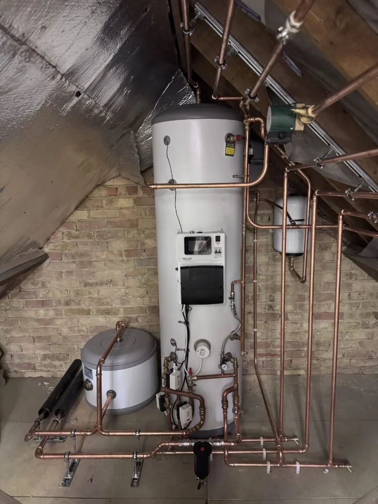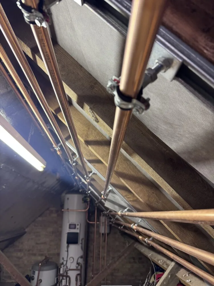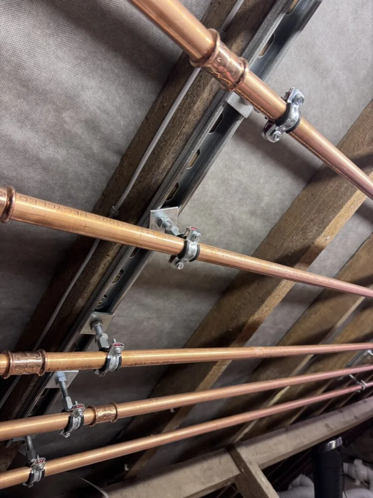 One of the standout features of this installation is the meticulous copper pipework. Our team takes great pride in delivering installations that are not only built to perform efficiently but are also finished to a standard that reflects true engineering skill. From clean bends to perfectly aligned runs, every detail is designed for reliability, durability and accessibility for future servicing.